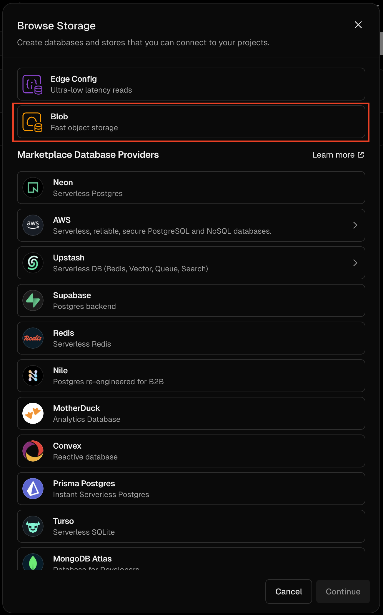 - vercel.com > Storage > Create Database > Blob