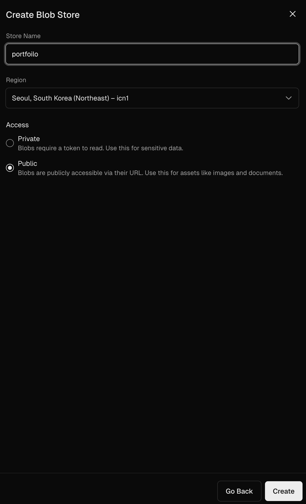 Seoul, Access:Public으로 설정)