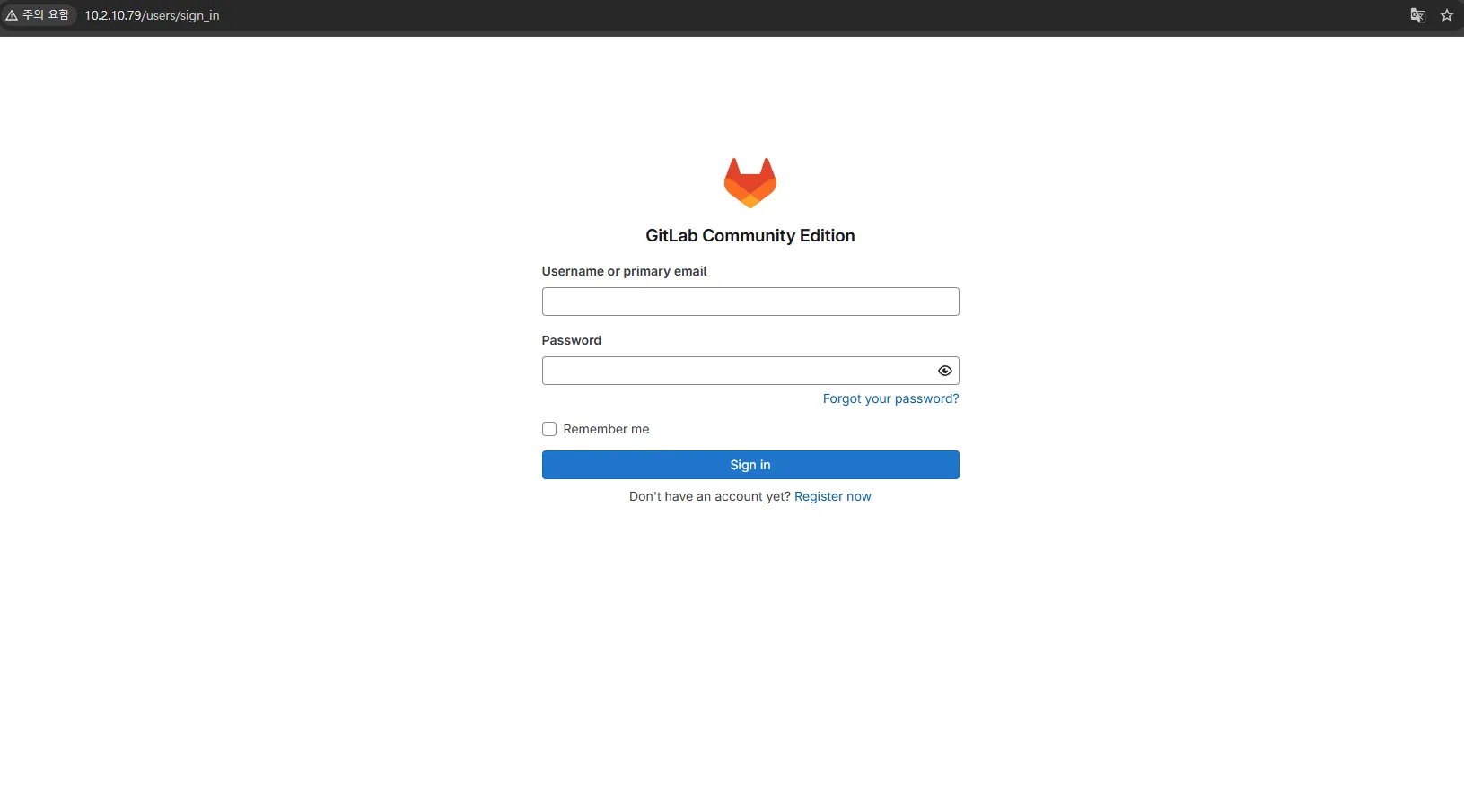sudo gitlab-ctl reconfigure이제 접속해보면 정상적으로 접속됩니다.