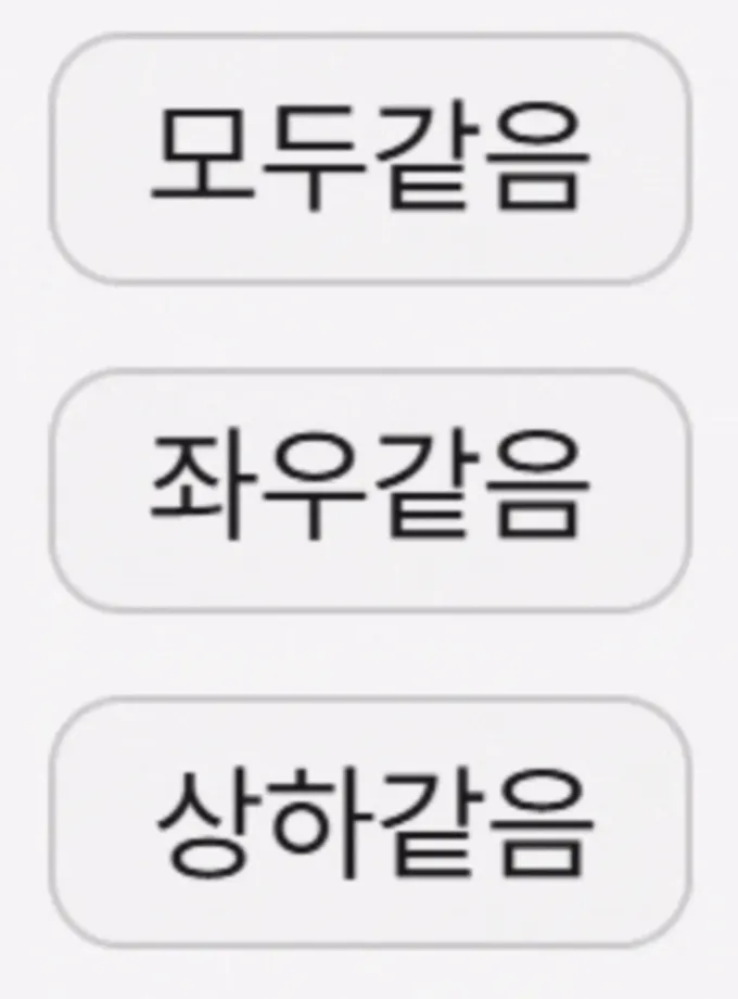 - 좌우 같음 : 좌우 패딩값이 동일하고, 상하 패딩값이 다름(글자가 아래로 치우쳐짐)