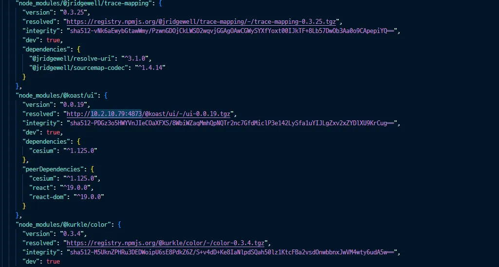 npm installpackage-lock.json을 다시 한 번 확인해보면, 원하는 레지스트리만 verdaccio 서버로 설정된 것을 확인할 수 있습니다.