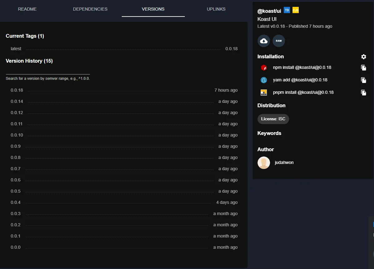 echo "@koast:registry=http://10.2.10.79:4873" > .npmrc- 설정 확인
