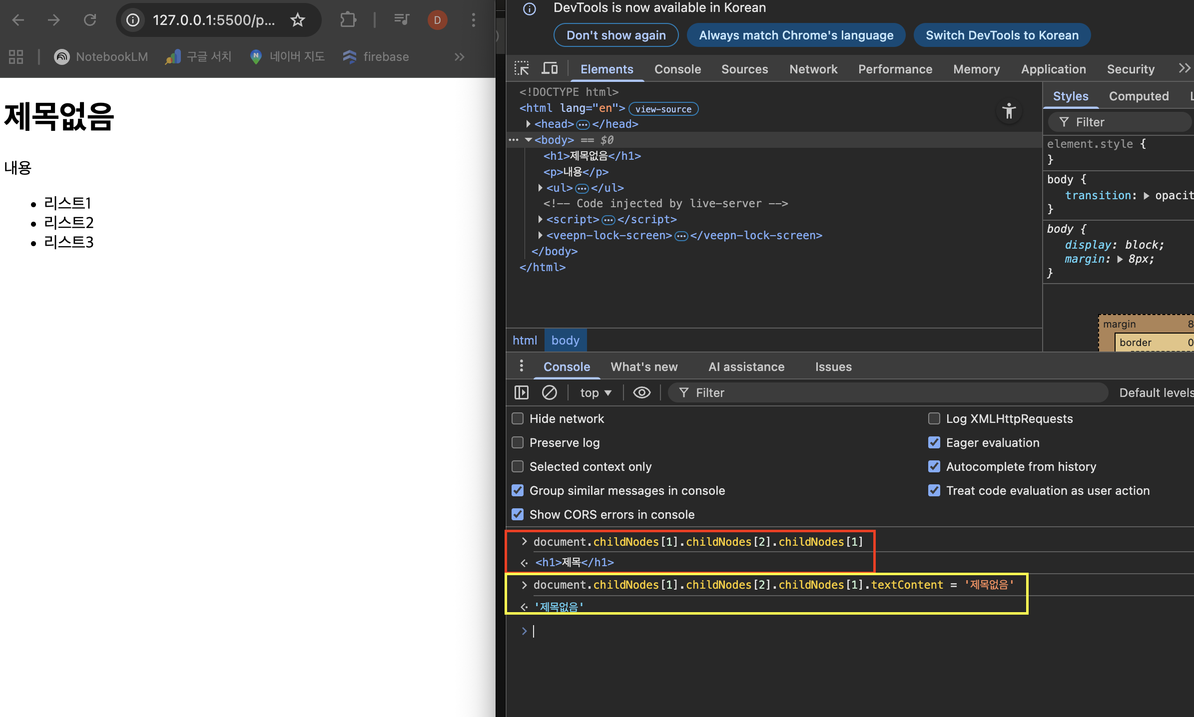 title.textContent = '제목없음';이렇게 하면 CSS 선택자를 이용해서 원하는 요소에 훨씬 쉽게 접근할 수 있다.