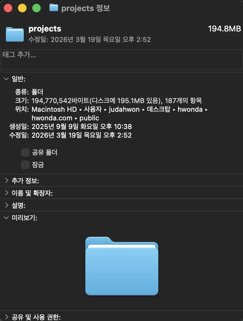이미지들은 전부 public/projects/에 넣어두고 있었는데, 전부 git에 포함되어 repo와 배포 자산이 같이 무거워졌습니다.