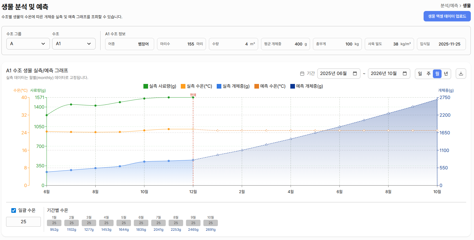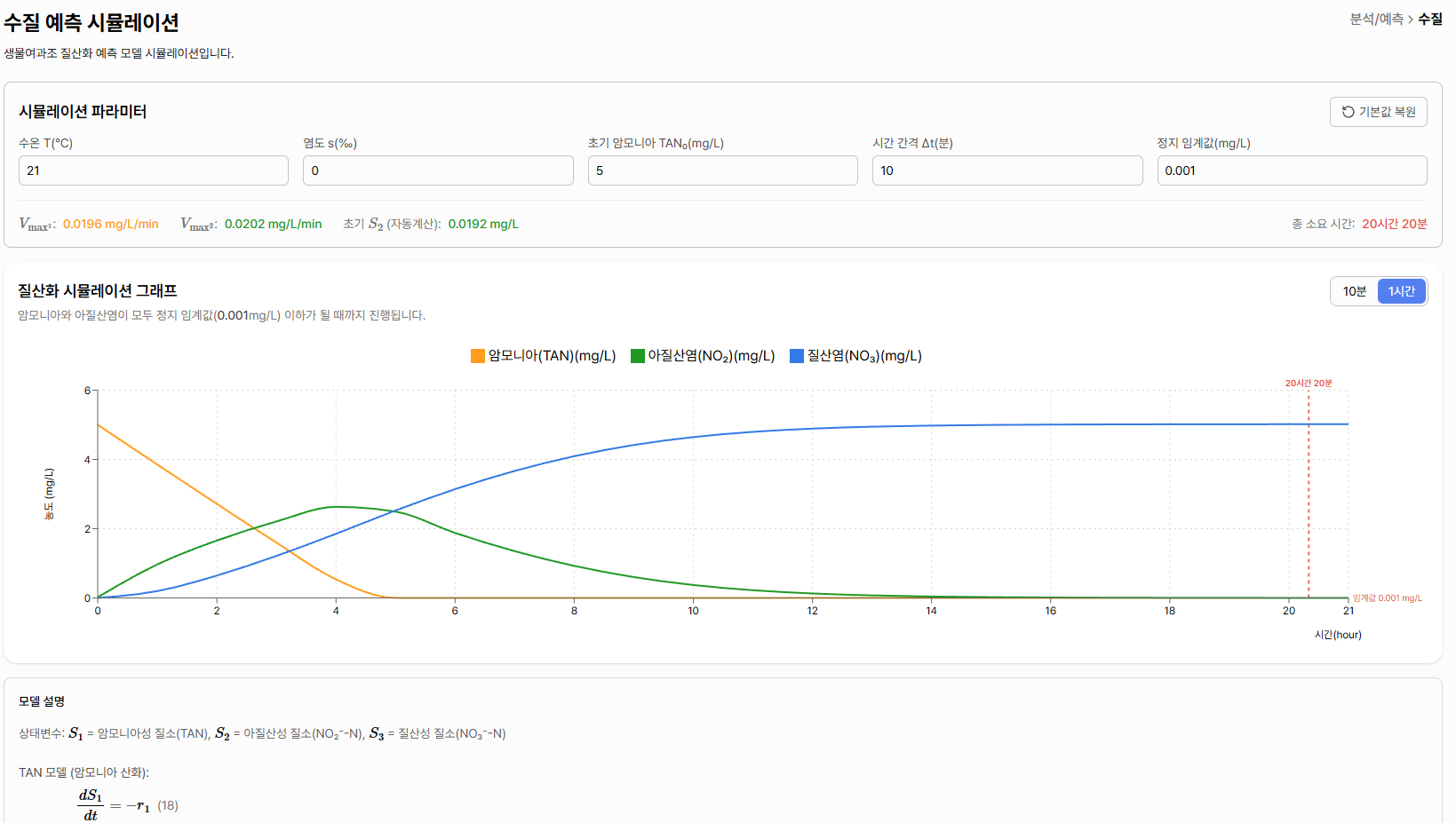 Chart.js를 활용해 성장 곡선 및 수질 시뮬레이션 데이터를 차트로 시각화