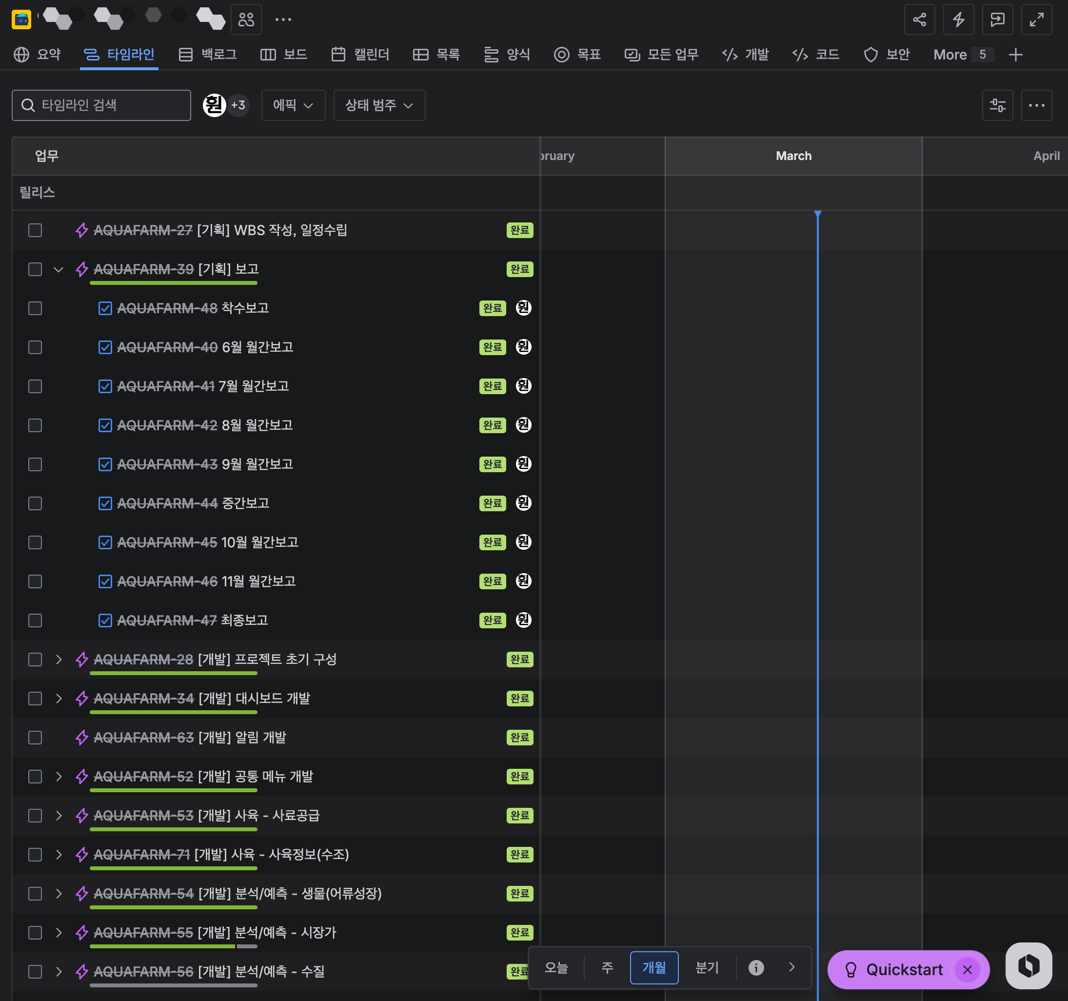 - Jira 기반 기능 단위 Task 및 칸반 보드로 진행 상황 관리